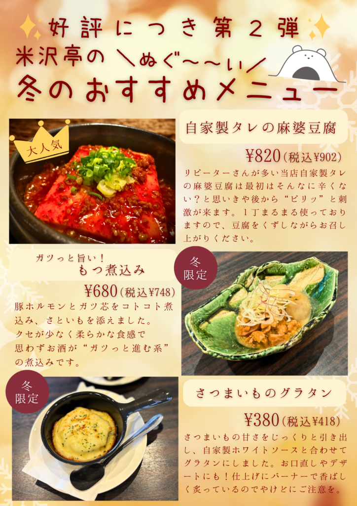 寒い冬は、じわじわと体が熱くなる米沢亭の“麻婆豆腐”がおすすめです(笑)
