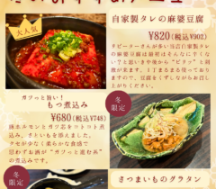 今回、おすすめサイドメニューに新たに加わったのが、「ガツ芯入りのもつ煮込み」と「さつまいものグラタン」です。