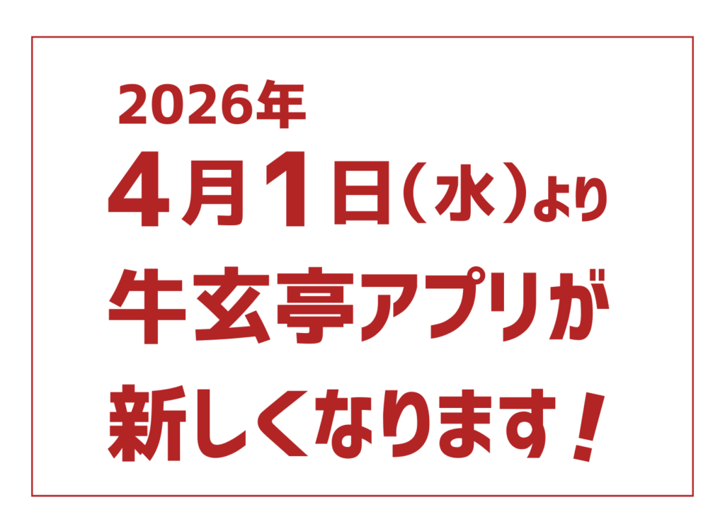 いつも牛玄亭アプリをご利用いただき、誠にありがとうございます。